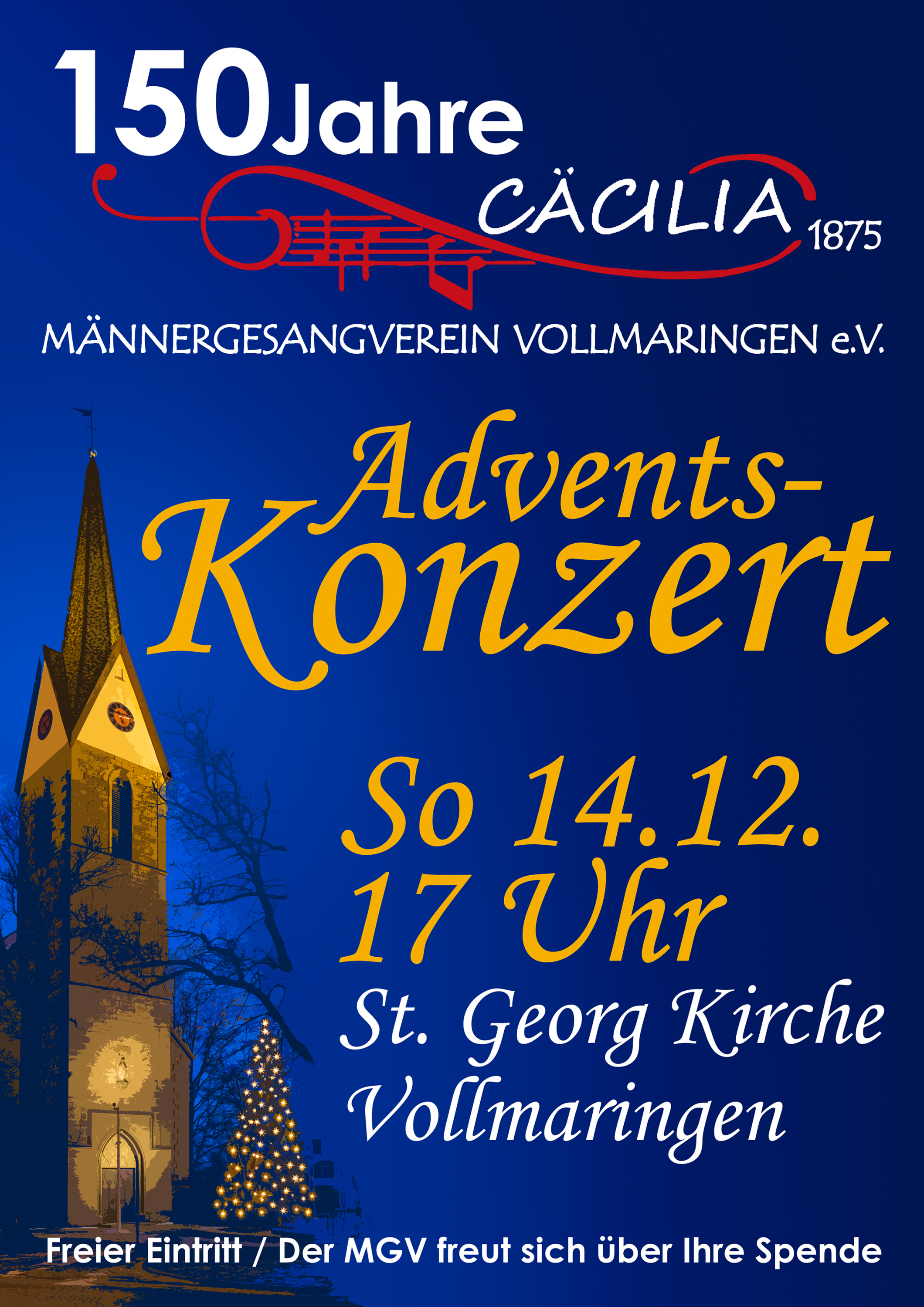 Adventskonzert mit dem Männergesangverein Vollmaringen e.V. am 14. Dezember um 17:00 Uhr in der St. Georg Kirche Vollmaringen